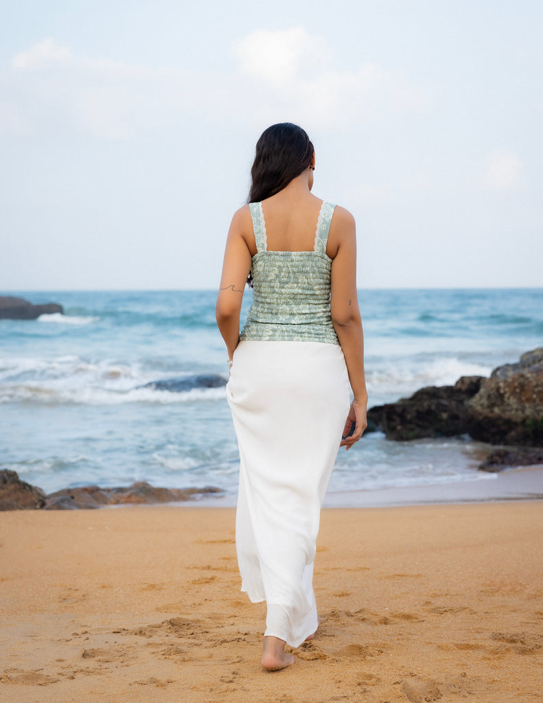 Lace Detailed Back Smocking Printed Top