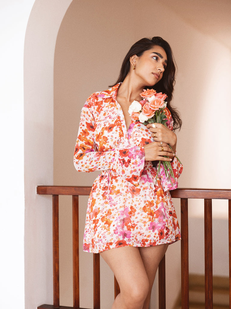 Bustier Detailed Long Sleeved Mini Dress