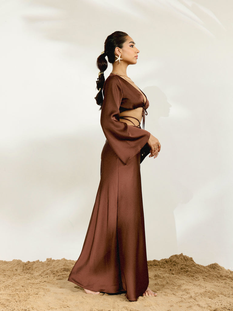 Front Tie Up Deep Neck Long Sleeved Top