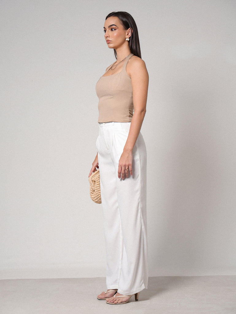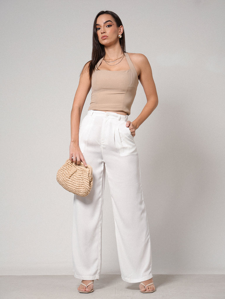 Front Pleated High Waist Wide Leg Pant
